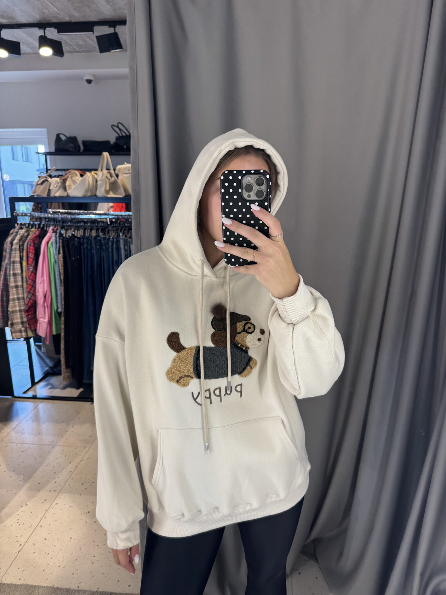 Labai šiltas ir jaukus džemperis su gobtuvu. Puikiai tinka šaltoms dienoms – minkštas audinys, patogus kirpimas ir stilingas dizainas leidžia jaustis patogiai visur.