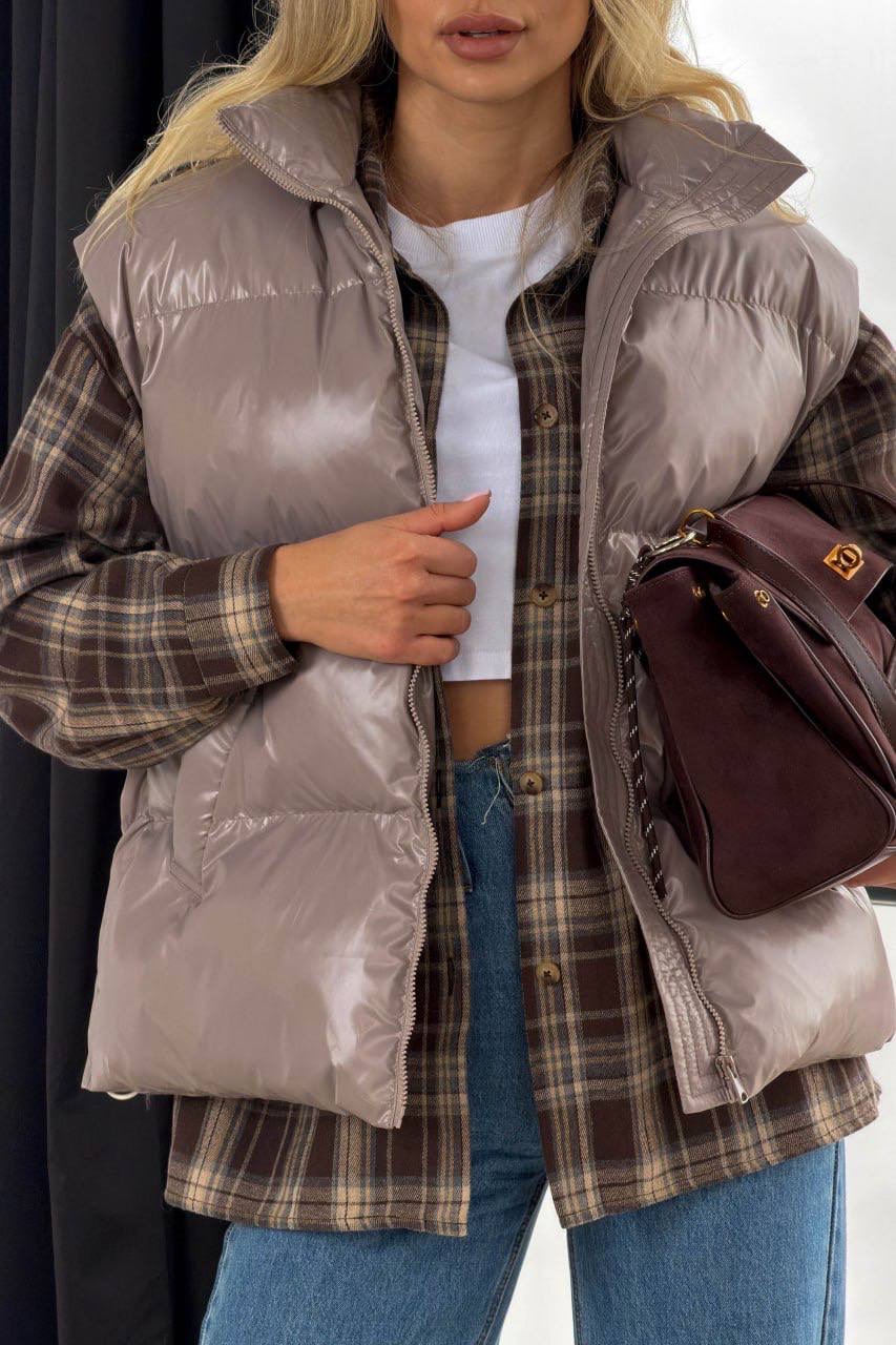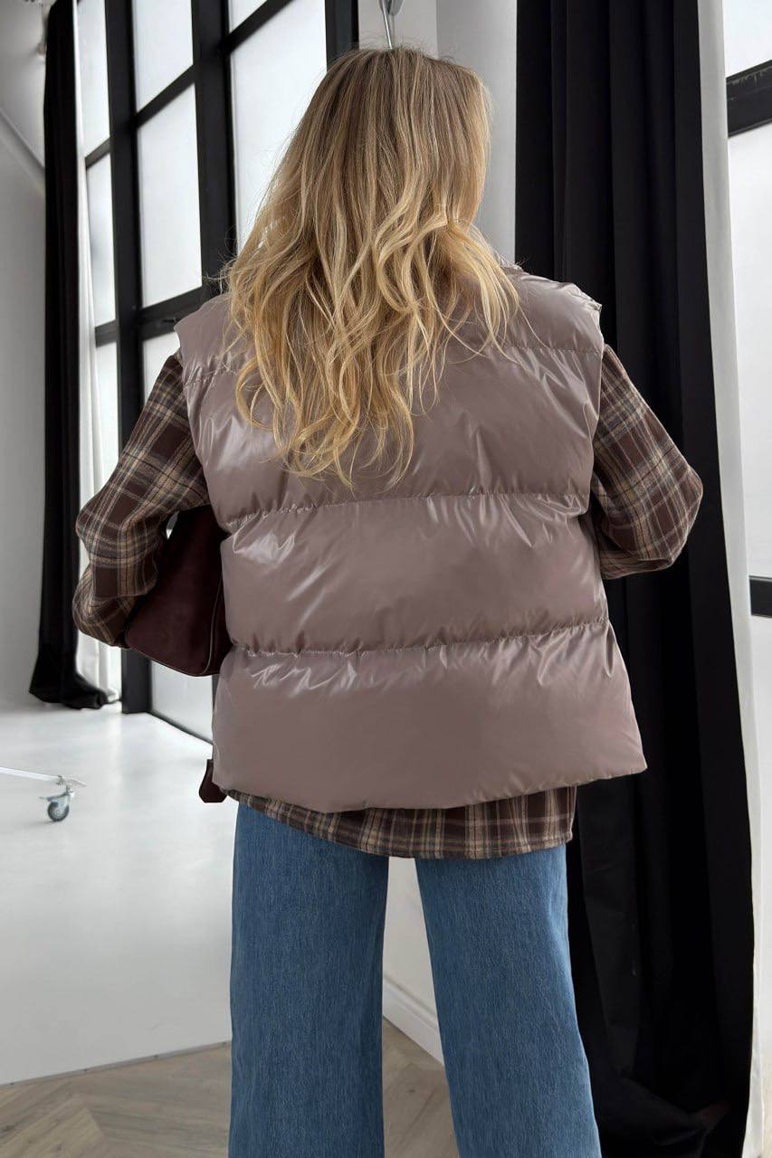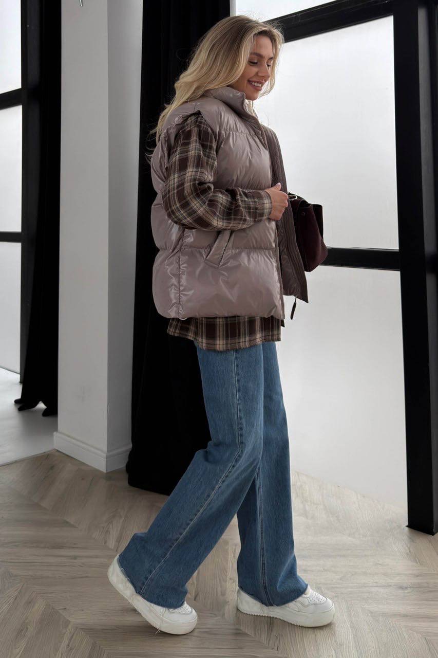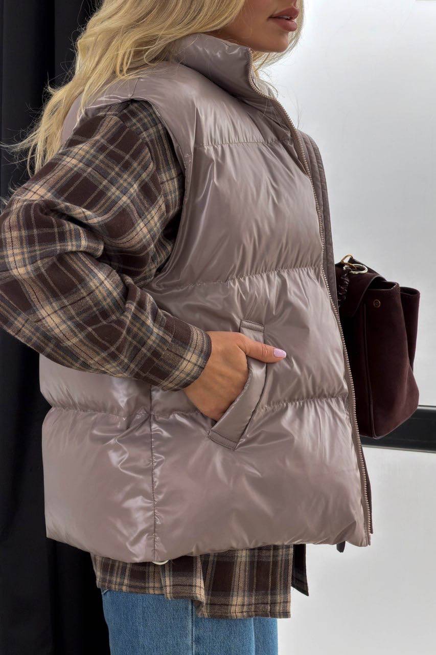 Stilinga oversized liemenė su stačia apykakle – modernus ir lengvai derinamas pasirinkimas kasdienai. Tiesaus silueto modelis su užtrauktuku ir įleistinėmis kišenėmis ne tik atrodo tvarkingai, bet ir yra labai patogus. Lengvas biopūko užpildas suteikia šilumos be papildomo storio, todėl liemenė puikiai tinka sluoksniuotiems deriniams.Dydžiai: S/M, L/XL