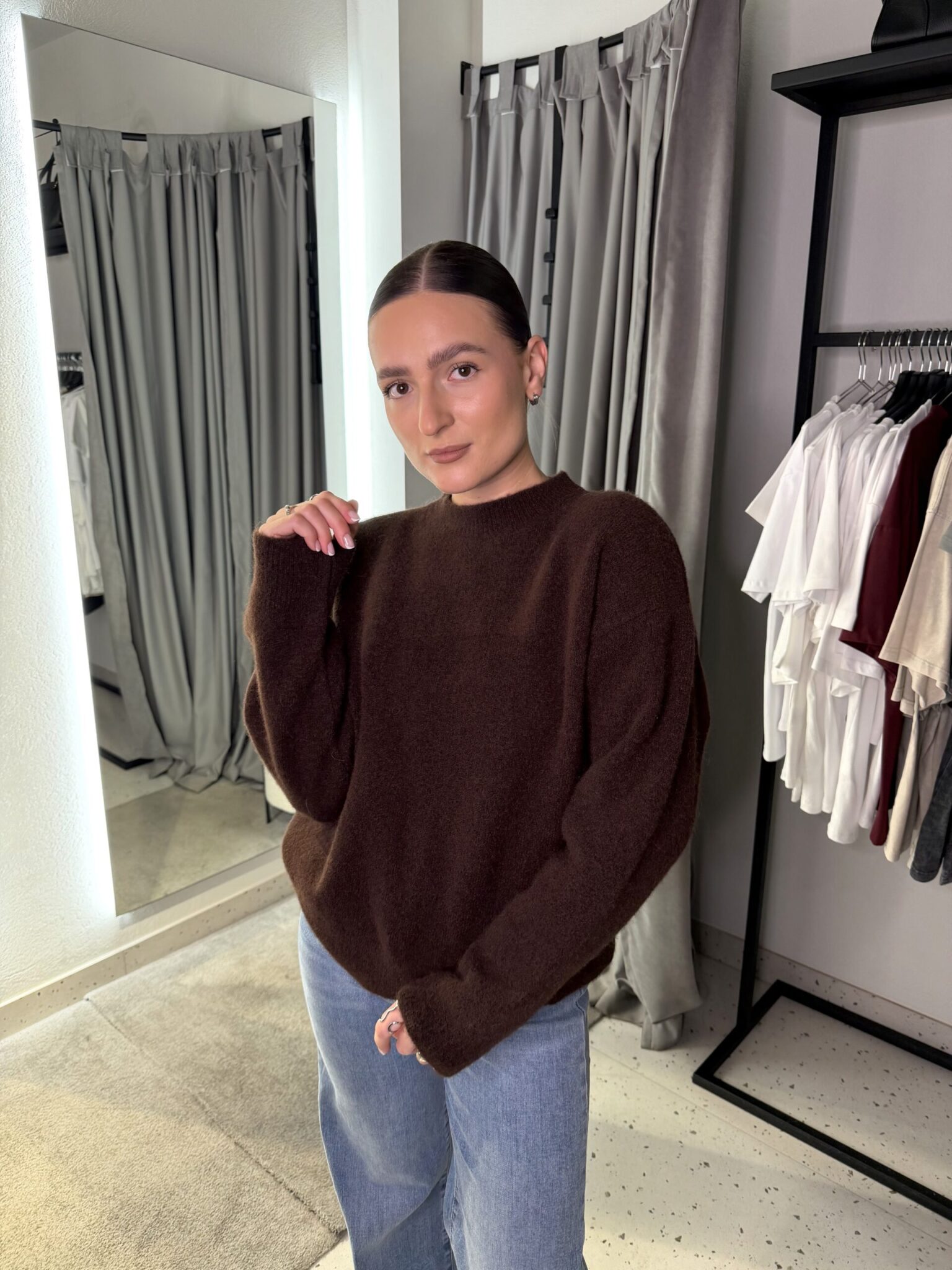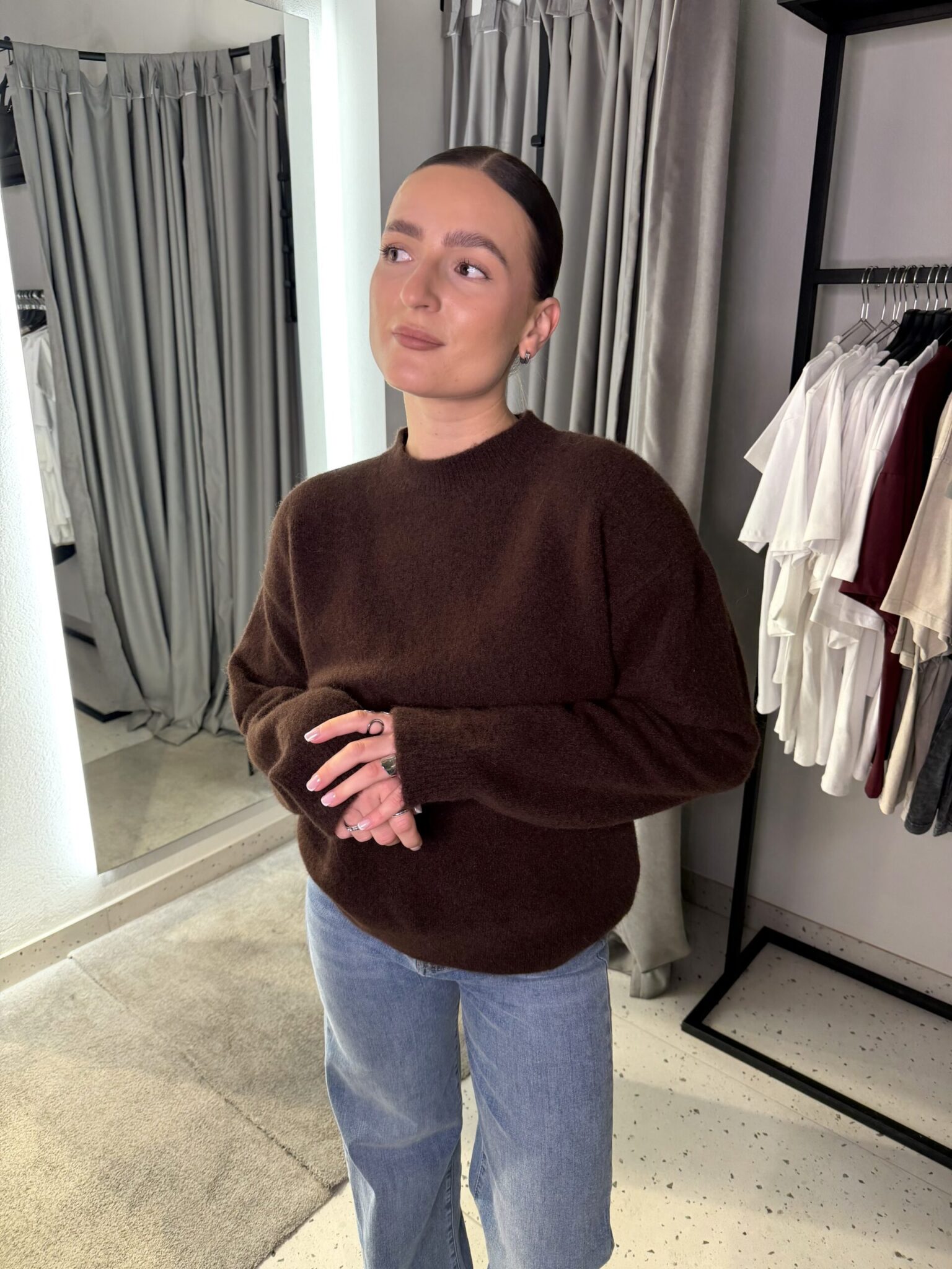43% poliesteris, 39% akrilas, 9% poliamidas, 5% vilna, 4% elastanas