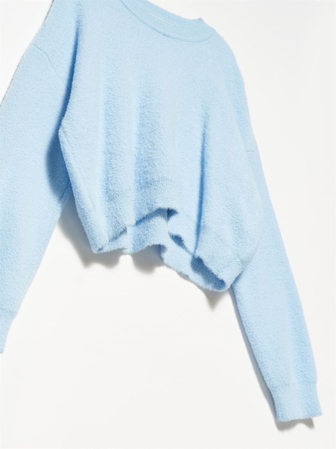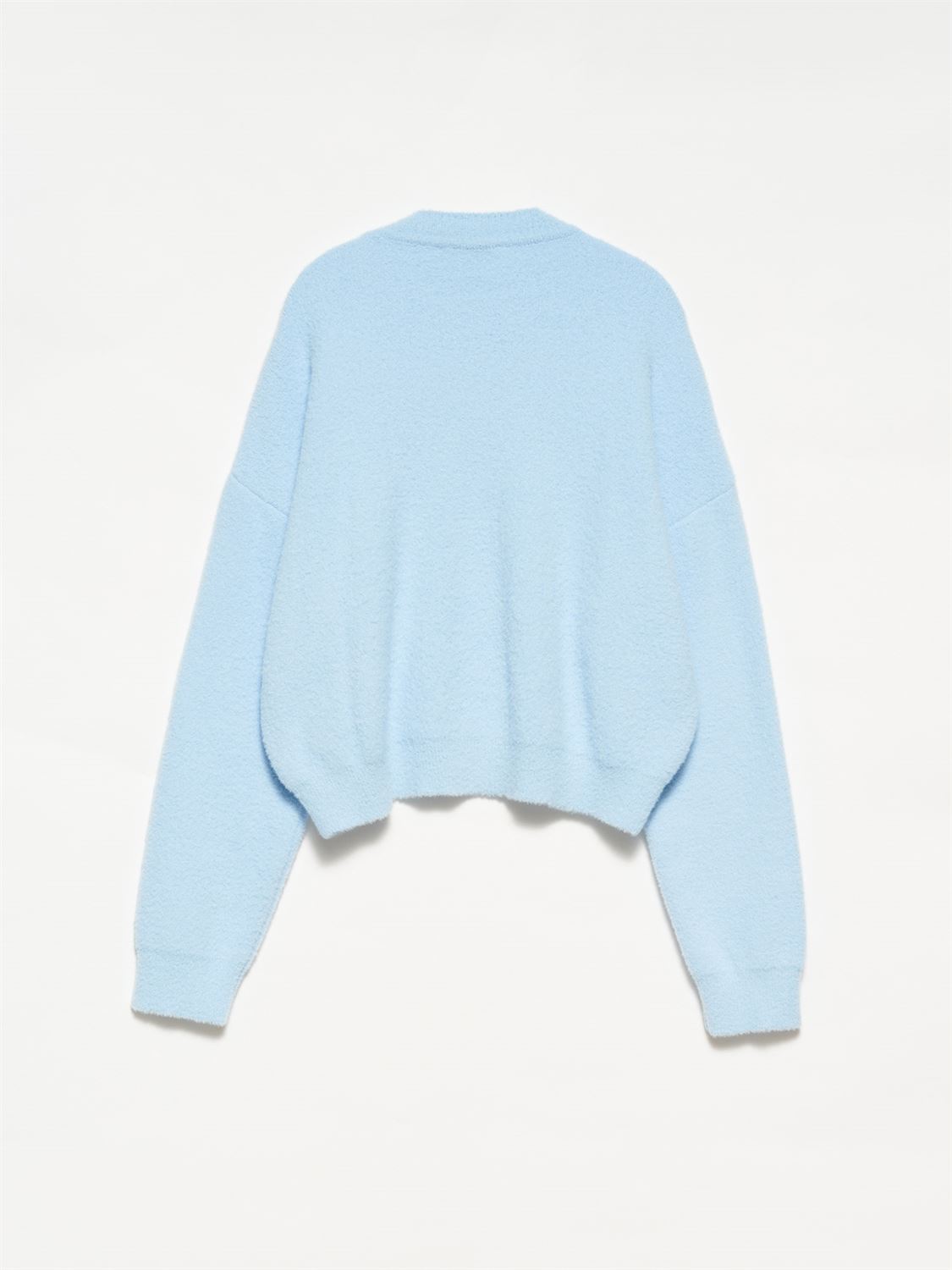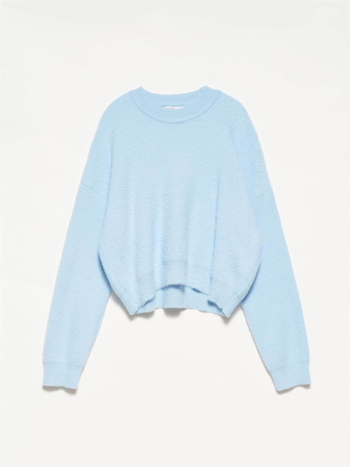 Žydras trumpesnio modelio megztukas – švelnus, jaukus ir lengvai priderinamas prie įvairių derinių. Trumpintas siluetas subtiliai pabrėžia liemenį ir puikiai tinka tiek prie aukšto liemens kelnių, tiek prie sijonų. Minkštas audinys malonus odai, todėl megztukas užtikrina komfortą visą dieną.