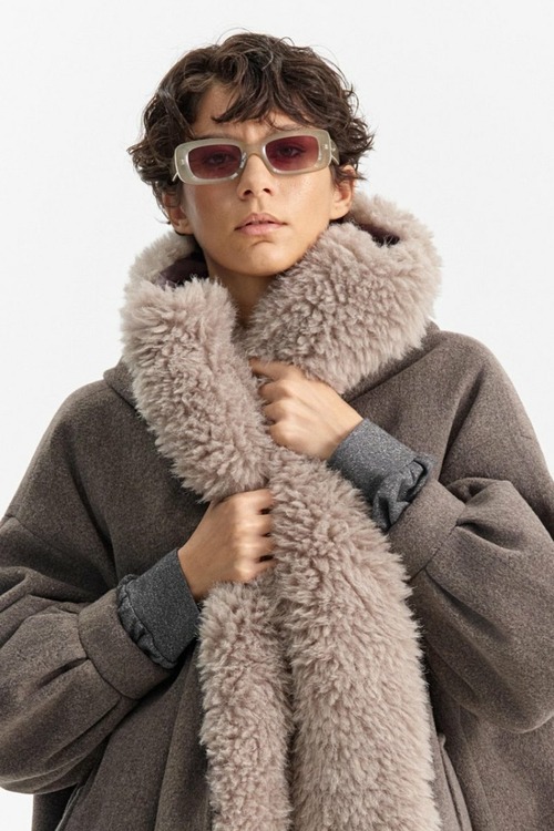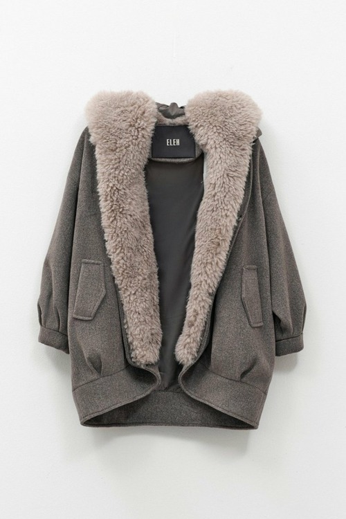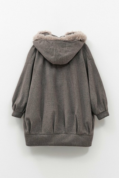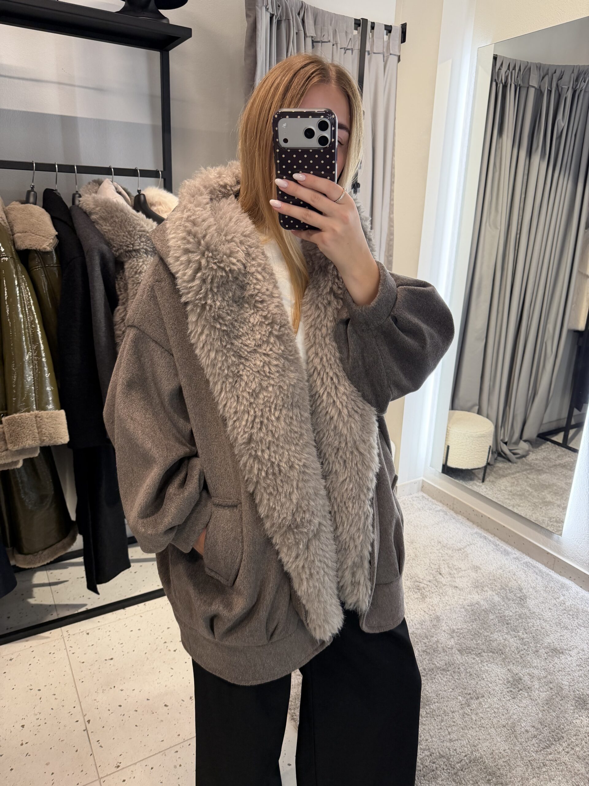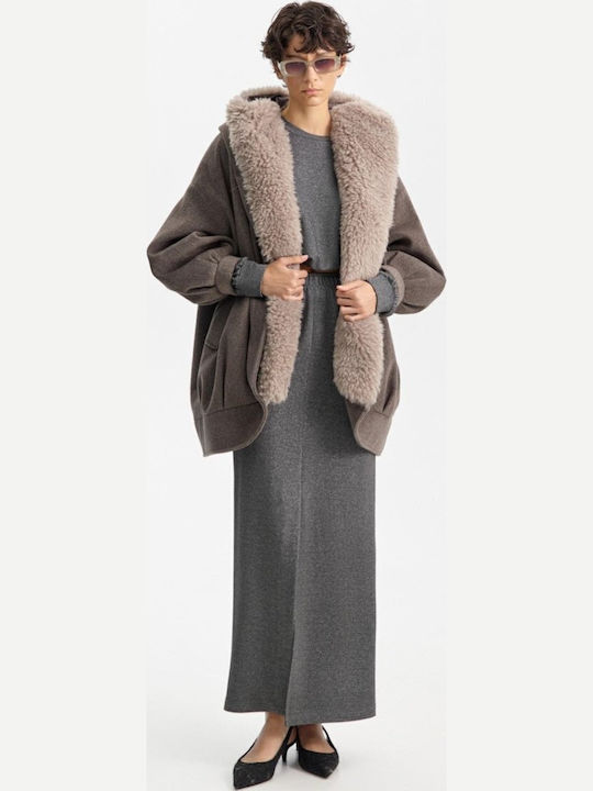 Pilkas paltas su kailiuku – elegantiškas ir jaukus pasirinkimas vėsesniam sezonui.