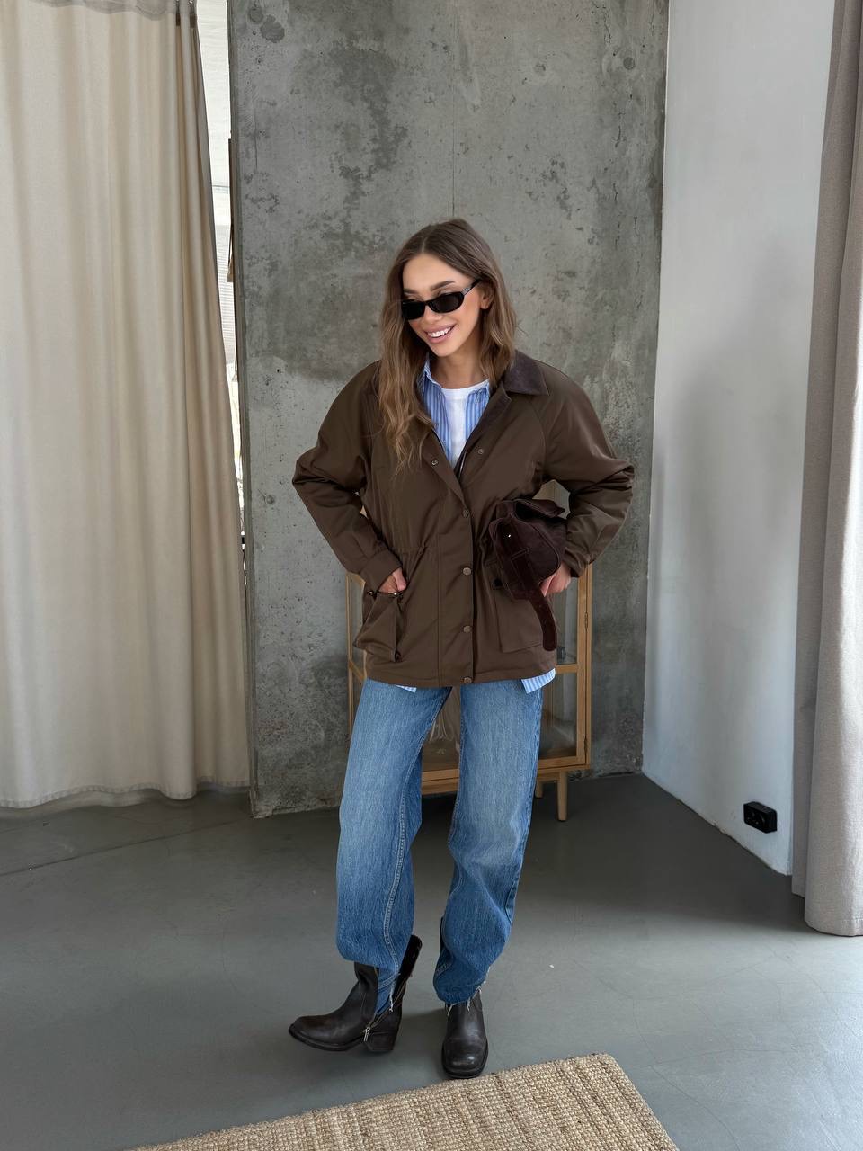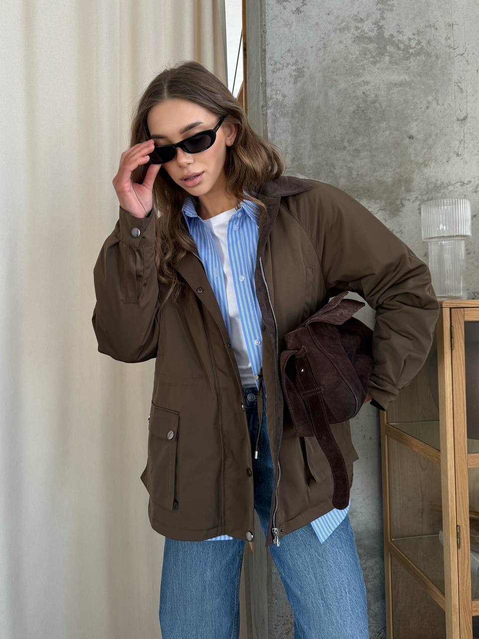 Užsegimas užtrauktuku ir sagomis, susitraukia per liemenį, audinys atsparus vandeniui