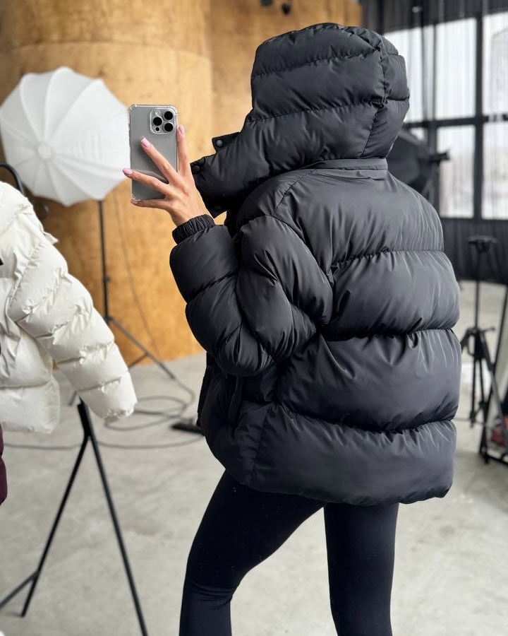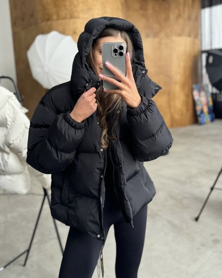 Stilinga ir funkcionali bio pūko striukė su gobtuvu. Užpildas bio pūkas, padedantis išlaikyti šilumą net iki –20 °C šalčiui.
