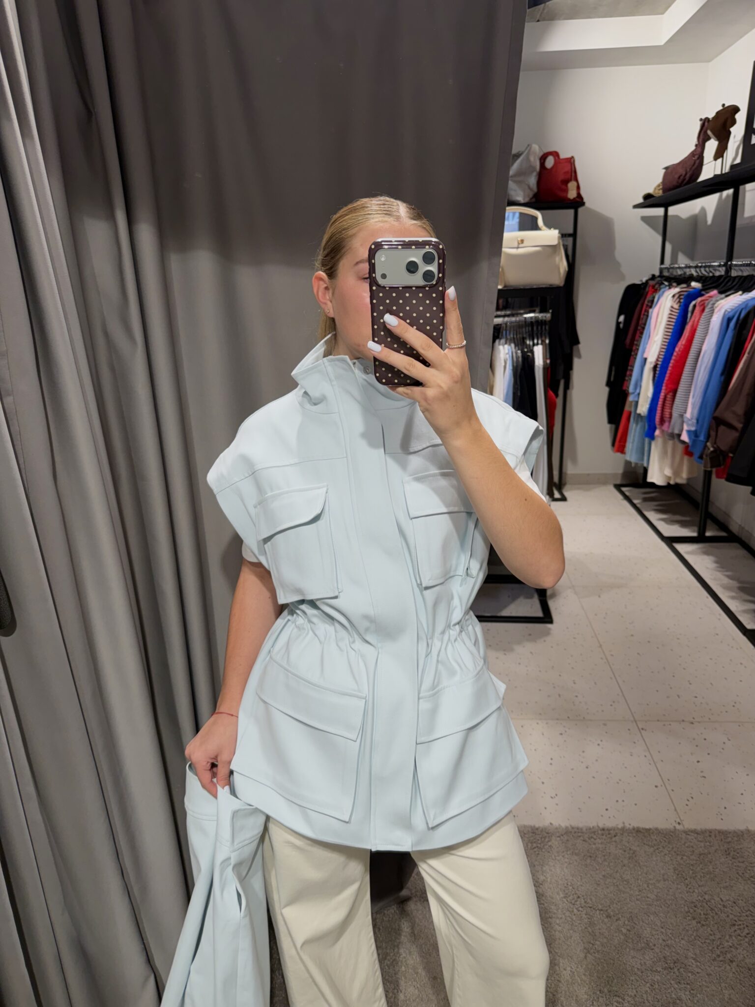 Rankovės lengvai nusisega užtrauktuku, todėl rūbą galite dėvėti ir kaip striukę, ir kaip liemenę. Liemuo reguliuojamas, tad modelį patogu prisitaikyti pagal save.