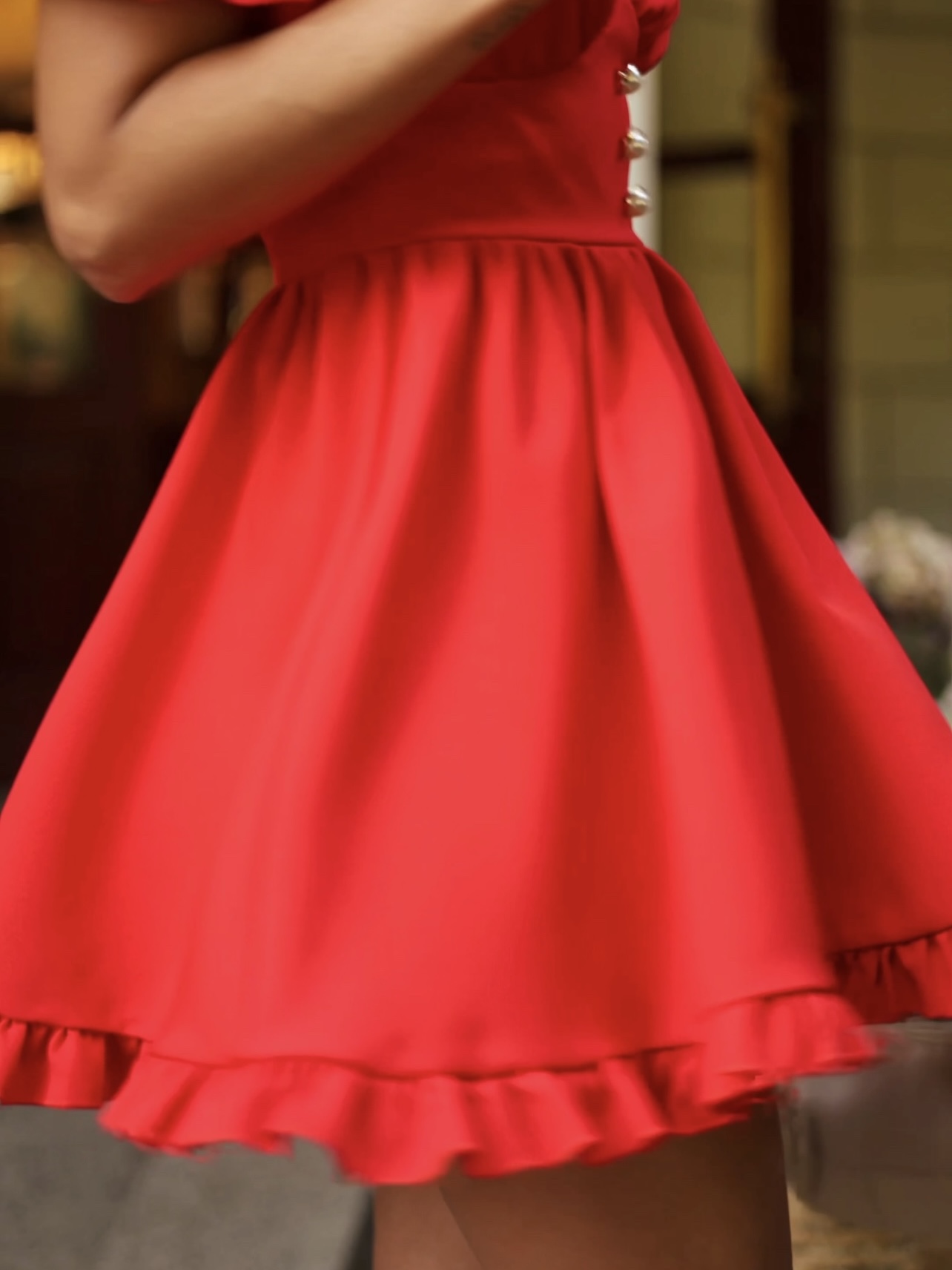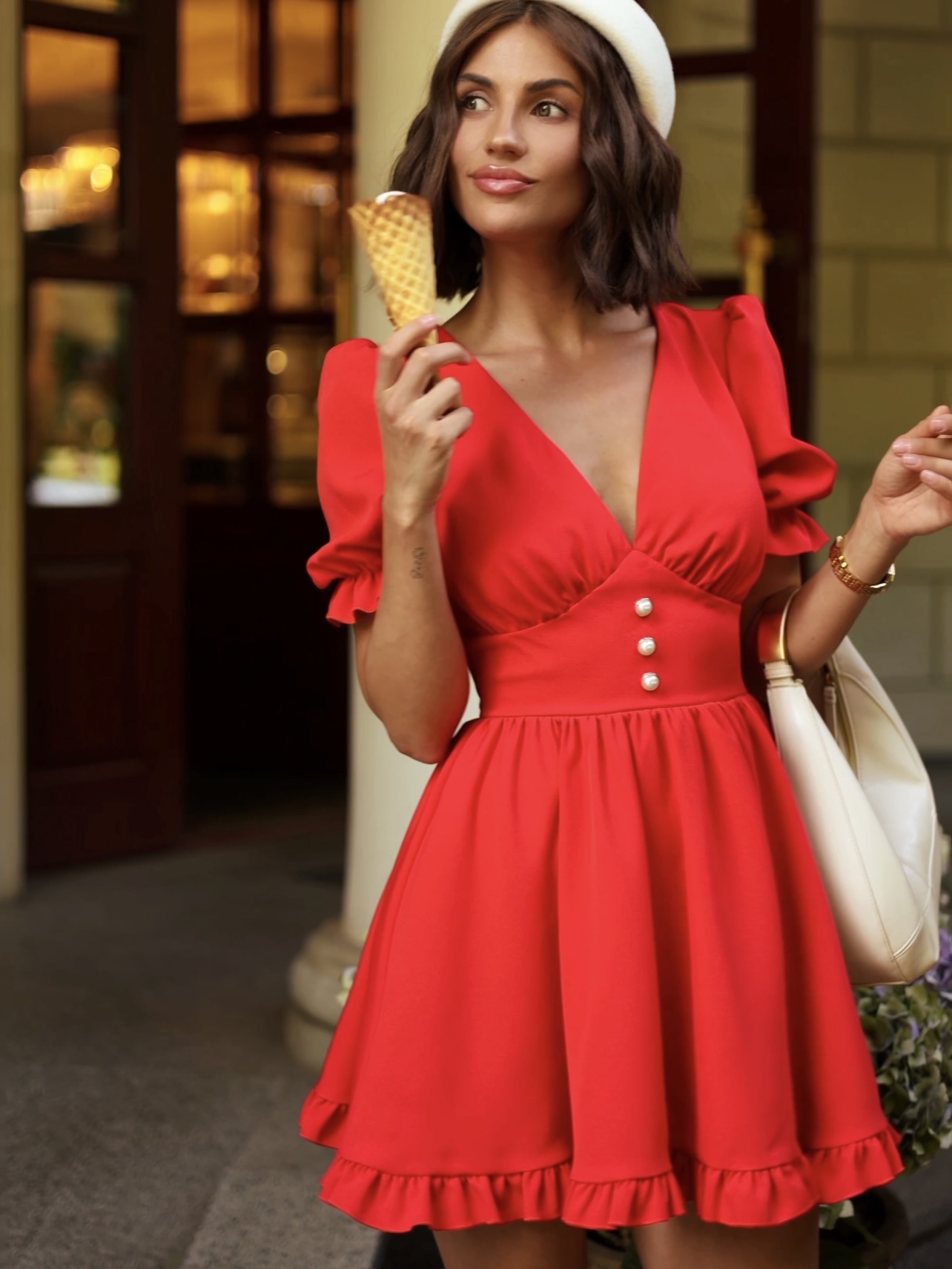 Stilinga mini suknelė su V formos iškirpte