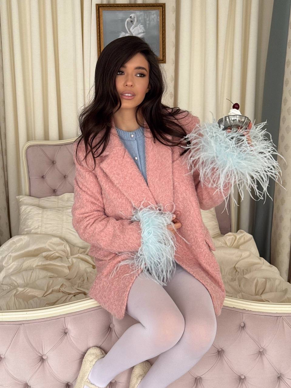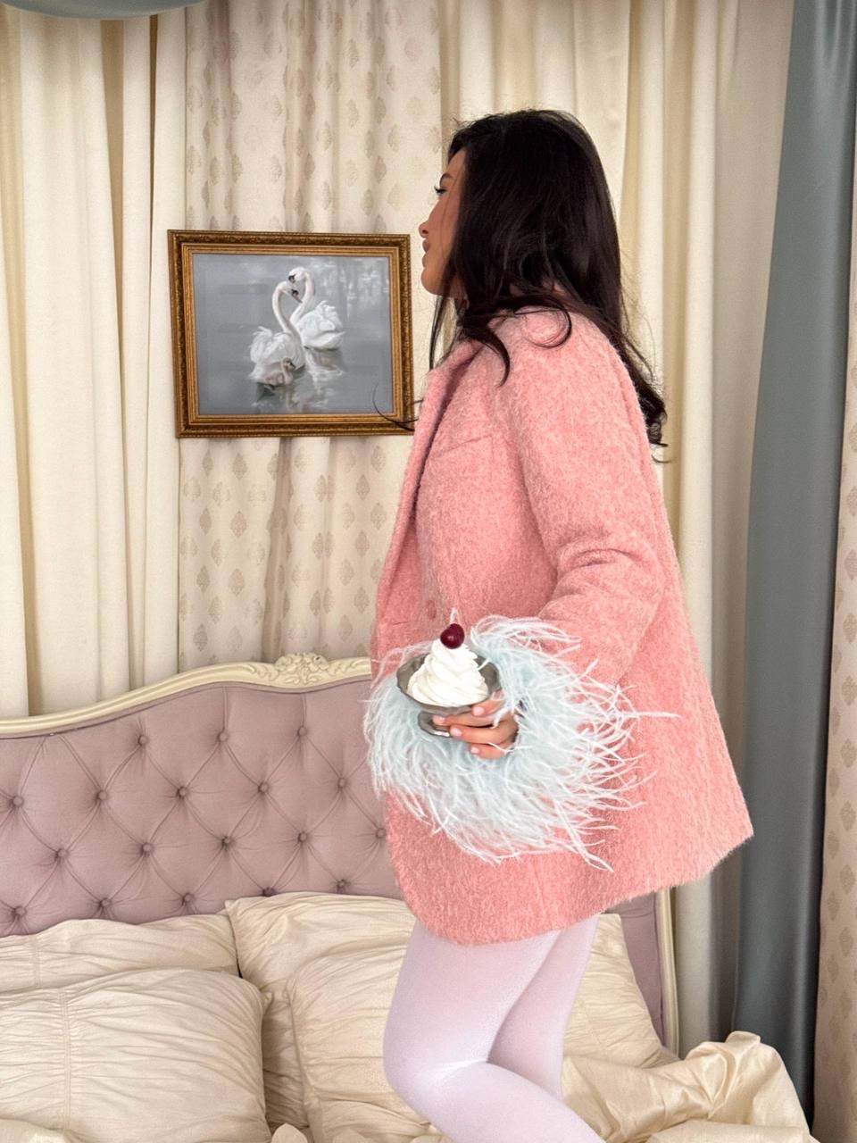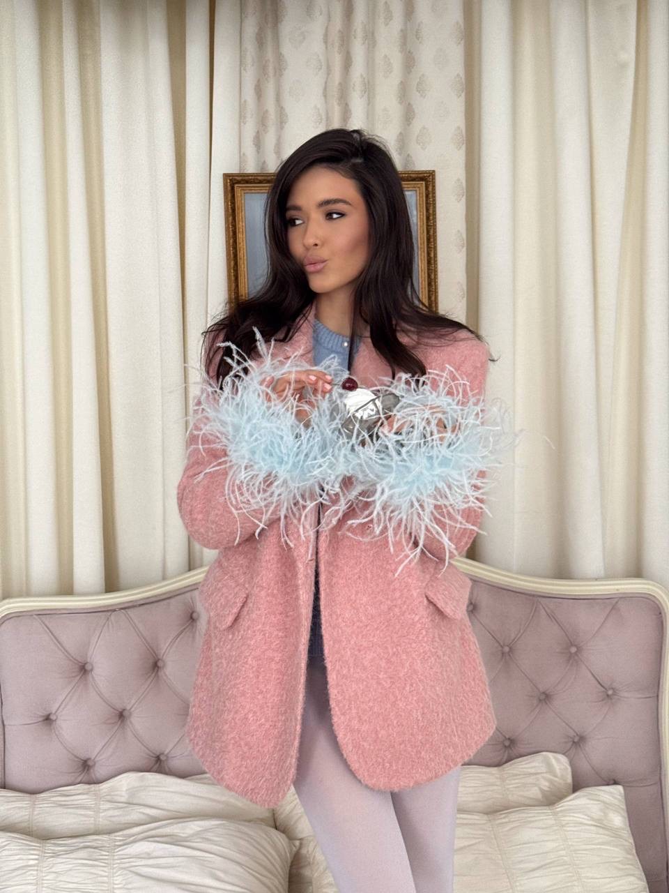 Klasikinis švarkas rausvo atspalvio – elegantiškas ir lengvai priderinamas pasirinkimas įvairioms progoms. Tiesaus kirpimo modelis patogiai gula, o atlenkiama apykaklė ir dvieilis užsegimas suteikia tvarkingą, subtiliai prabangų įvaizdį. Švarkas be plunksnų!